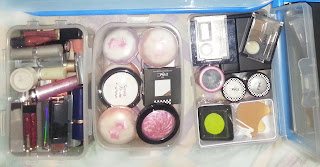 I am using lunch boxes to put my lipsticks, blushes, single eyeshadows, eyebrow powders etc.